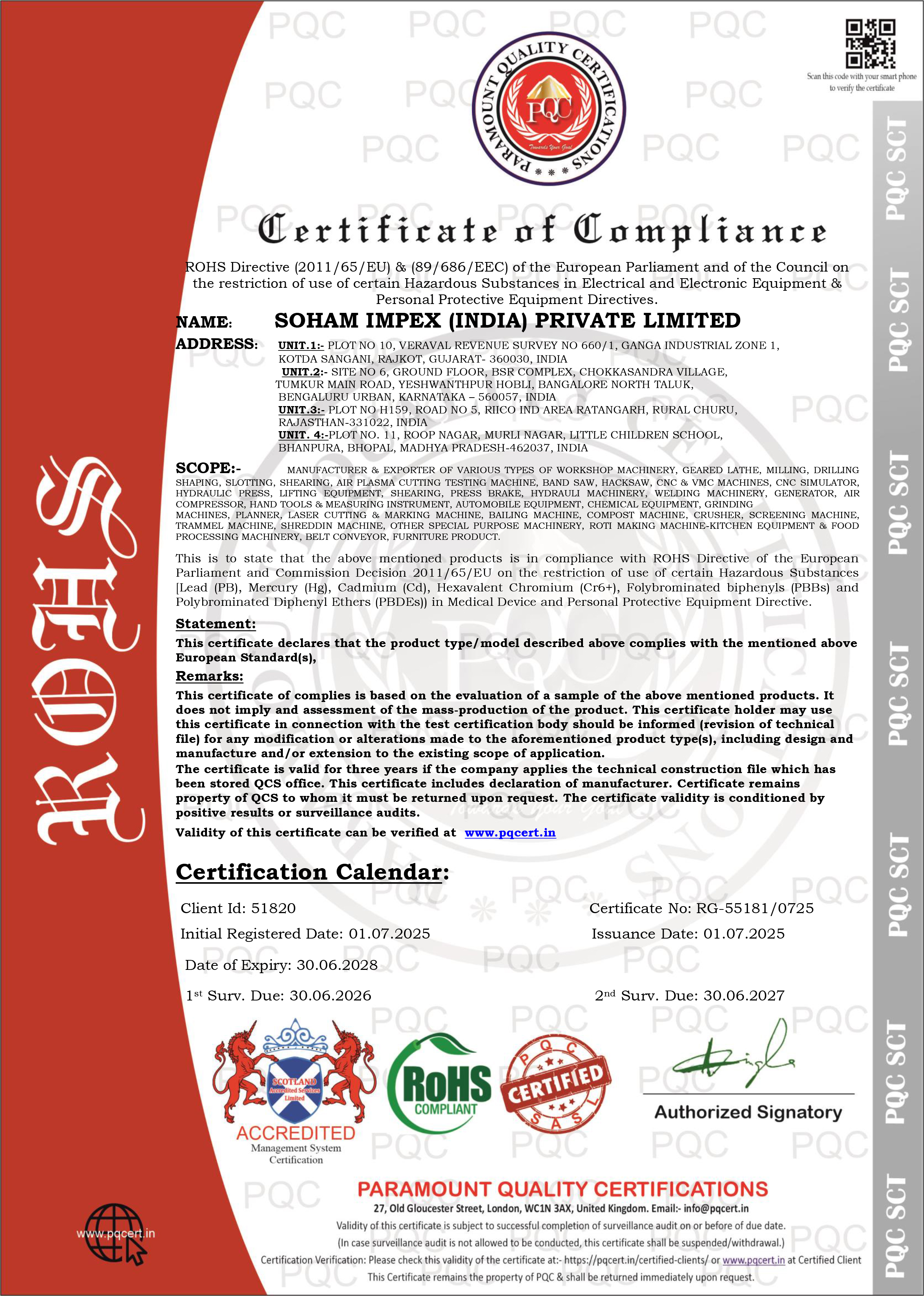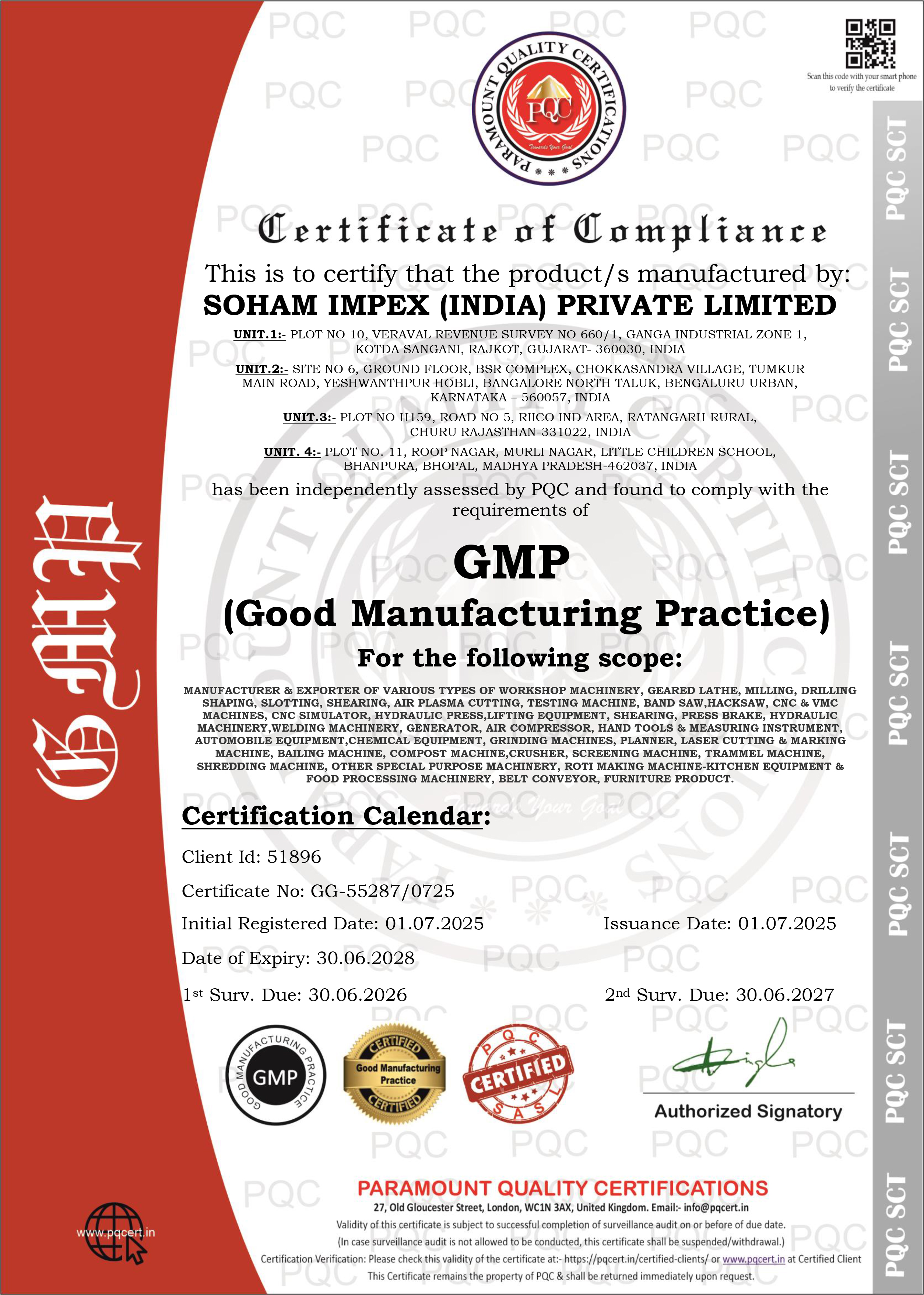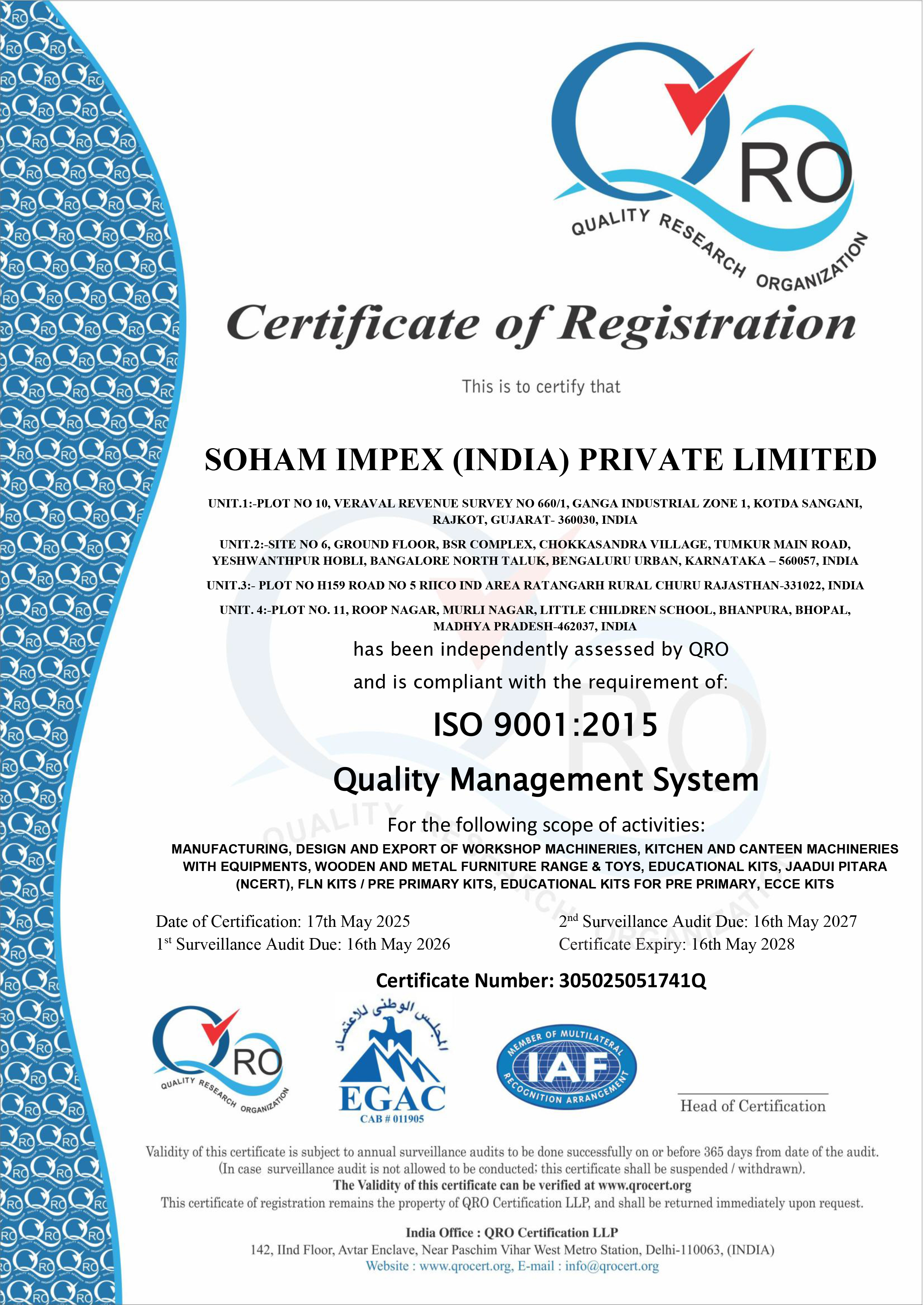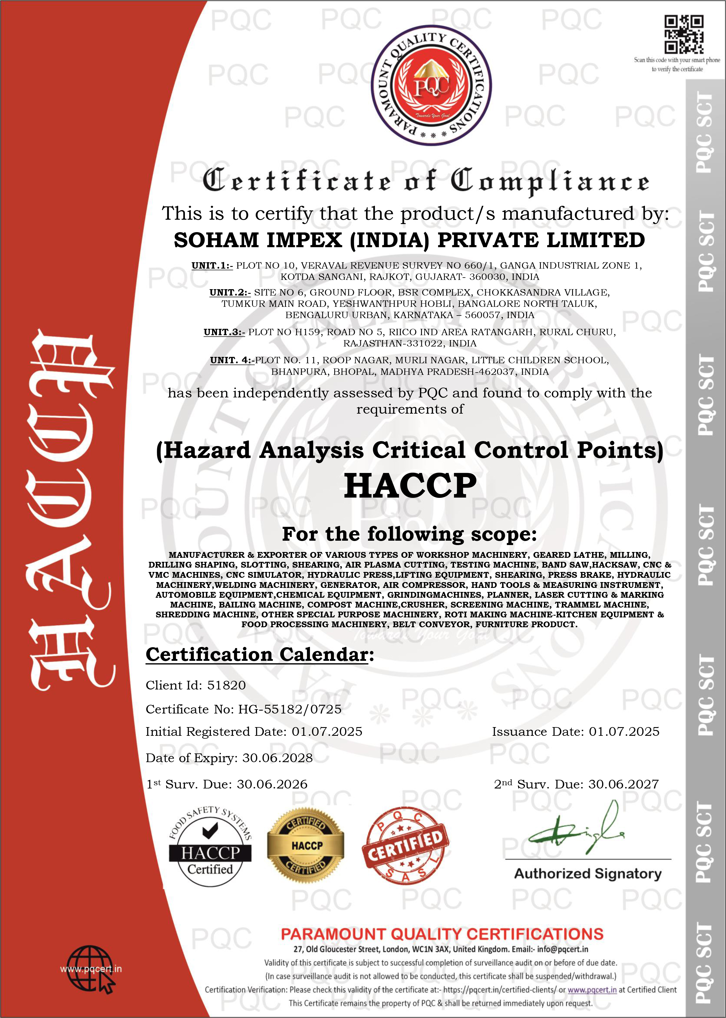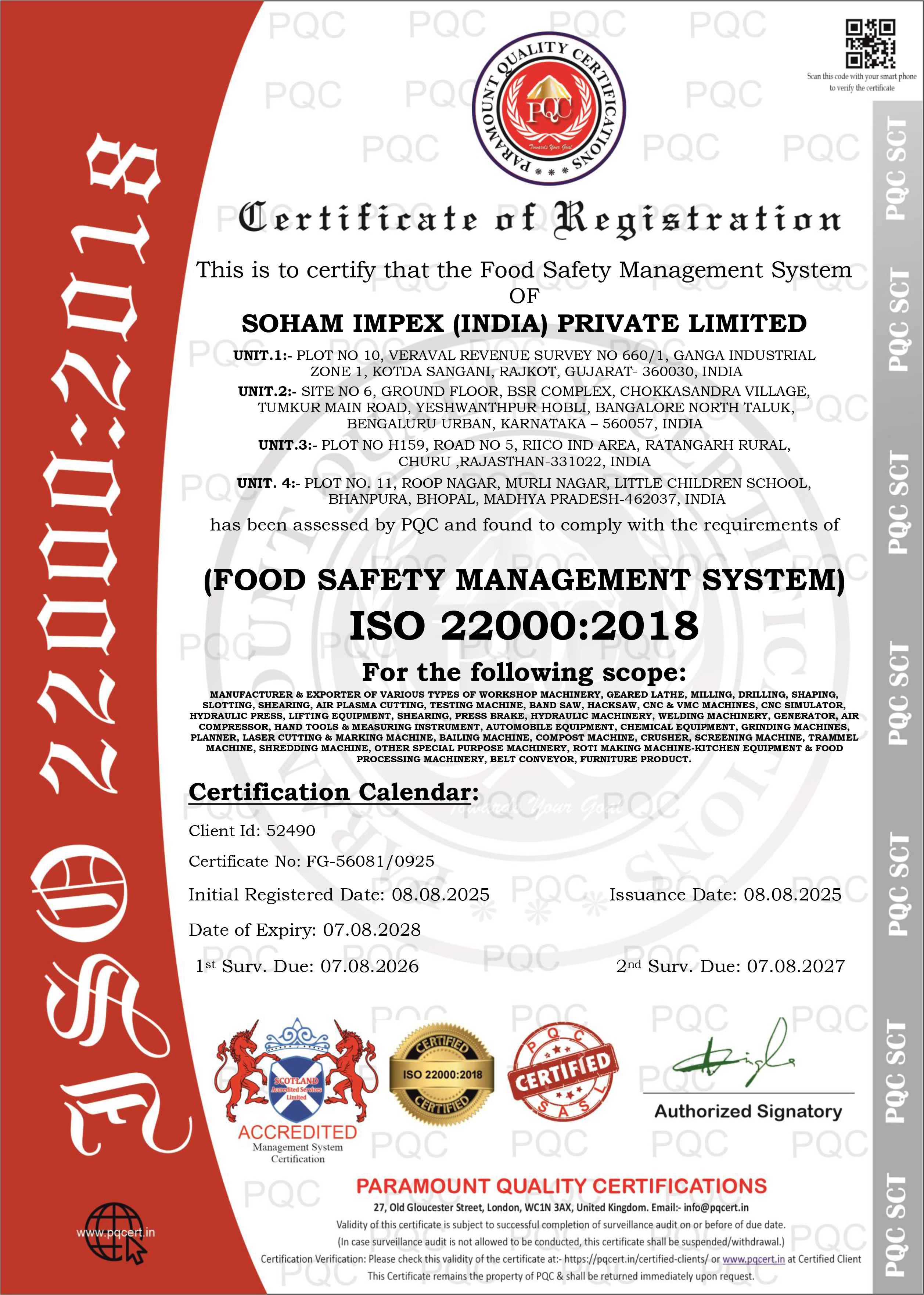 Soham Impex (India) Pvt. Ltd. is a Rajkot (Gujarat) based leading manufacturer and supplier of industrial machinery and equipment. With over 25 years of experience, we cater to diverse industries including commercial kitchens, food processing, manufacturing, hospitality, and various industrial sectors. Today "SOHAM IMPEX" has become one of the most recognisable brands for quality machinery and equipment solutions across India.